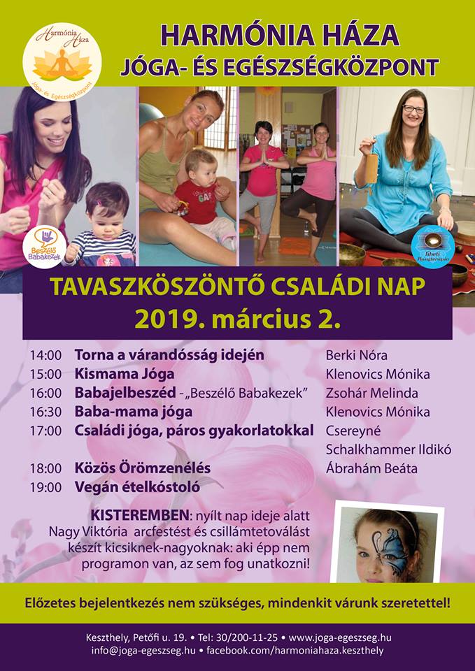 Május 2. - Baba-mama torna (hozd el a babádat is! Felkiáltással baba kompatibilis tornával, játékokkal, mondókákkal és kondi visszanyerő edzéssel.- szuggesztiók szülés alatt hipnotikus erejű mondatok ( itt a téma nem csak az, hogy te milyen szuggesztióklal tudsz hatni önmagadra, hanem az, hogy mennyi szuggesztió ér téged ebben a módosult tudatállapotban, amik befolyásolhatják a szülés végkimenetelét)