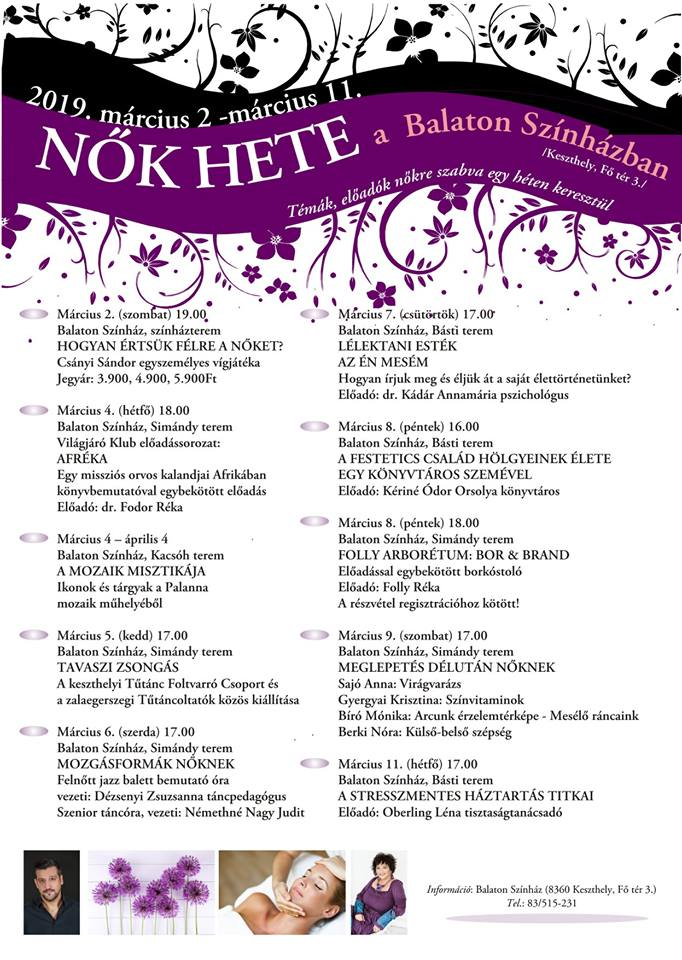 A keszthelyi Balaton Színház és Kongresszusi Központ meghívott a Nők hete rendezvénysorozat kiállítói közé, természetesen örömmel vállaltam, 2018.03.03-án. Az ezzel kapcsolatos cikket, videóval együtt ITT olvashatjátok